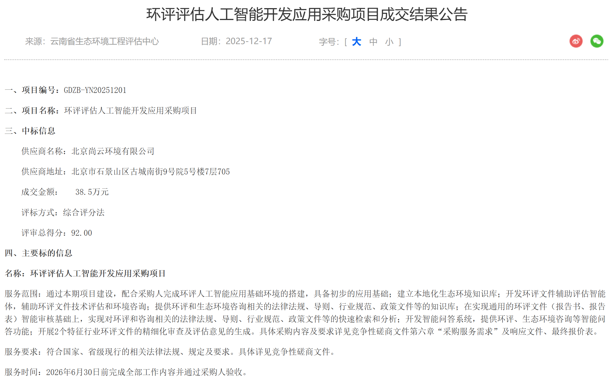 近日,北京168官方开奖官网直播有限公司成功中标 “环评评估人工智能开发应用采购项目” 。此次中标不仅彰显了公司在环境评估领域的技术实力与市场认可度,也标志着人工智能技术在环境咨询与服务领域的深度应用迈出了关键一步。