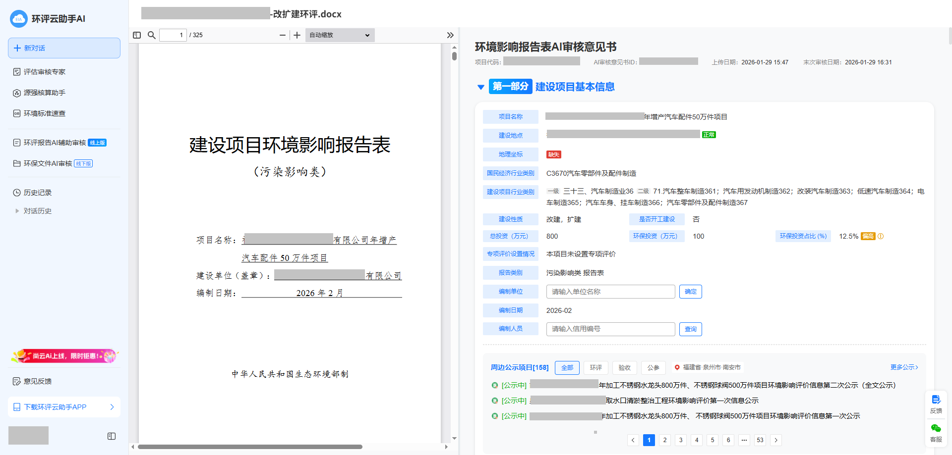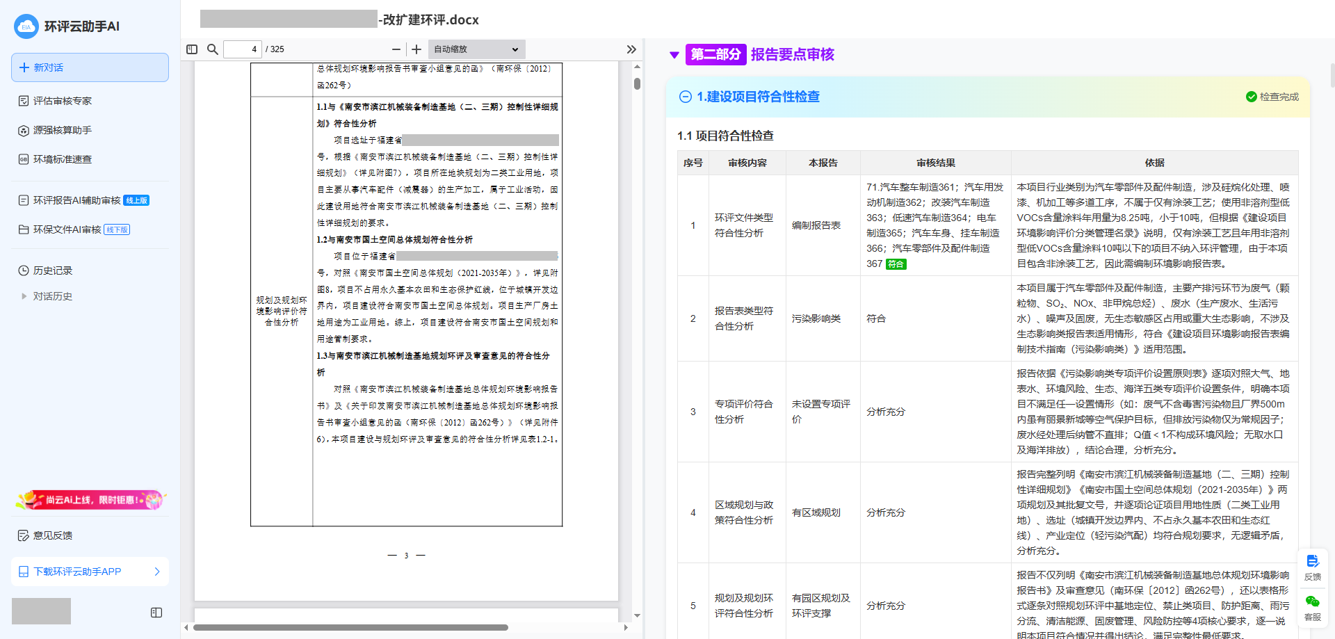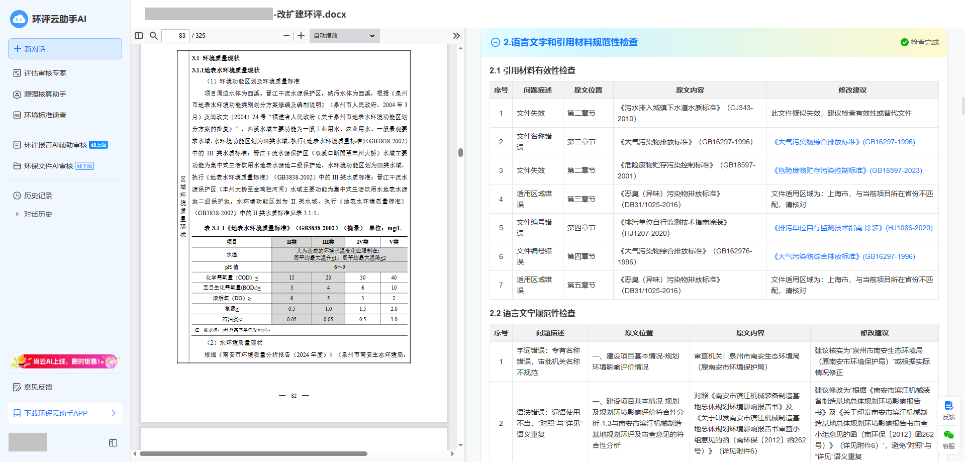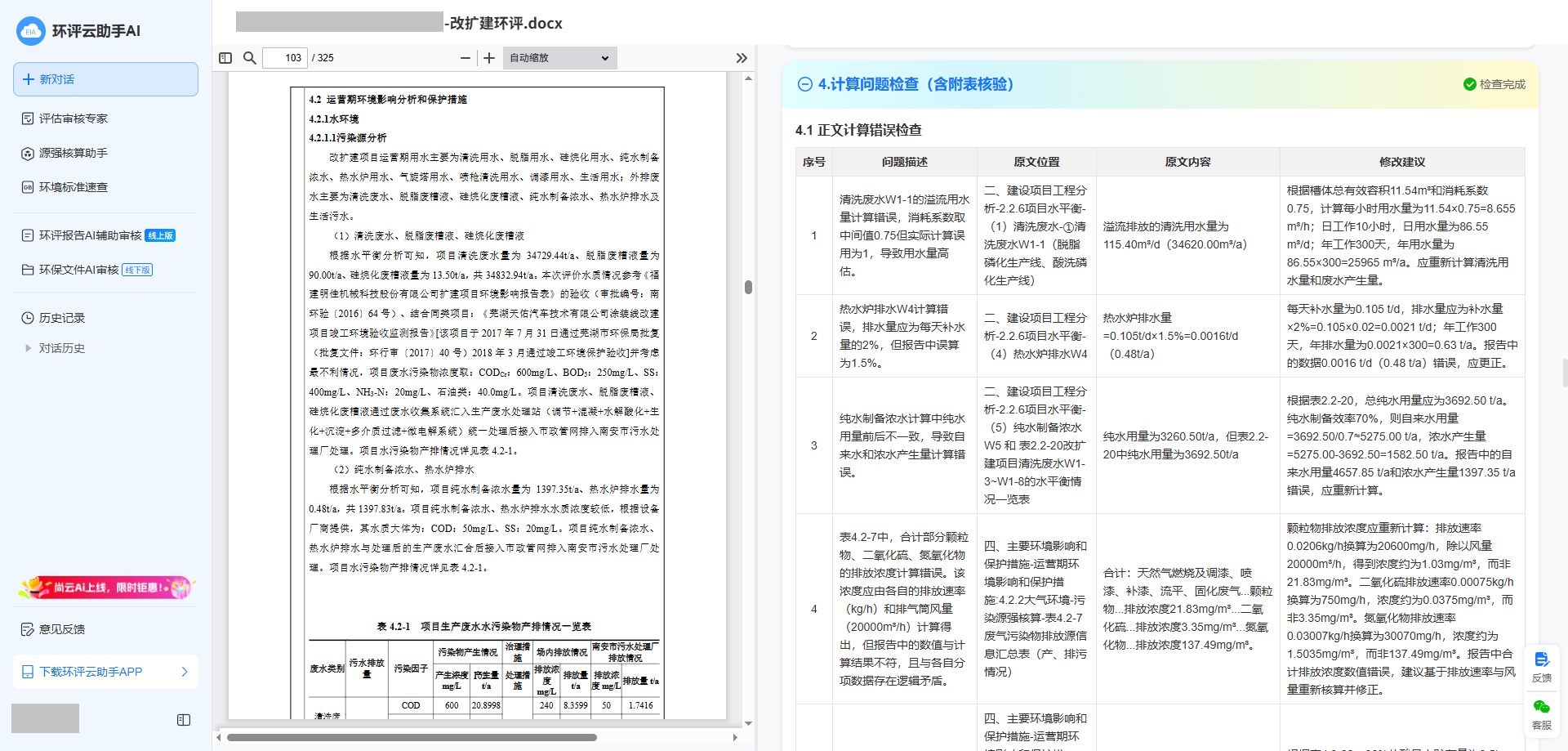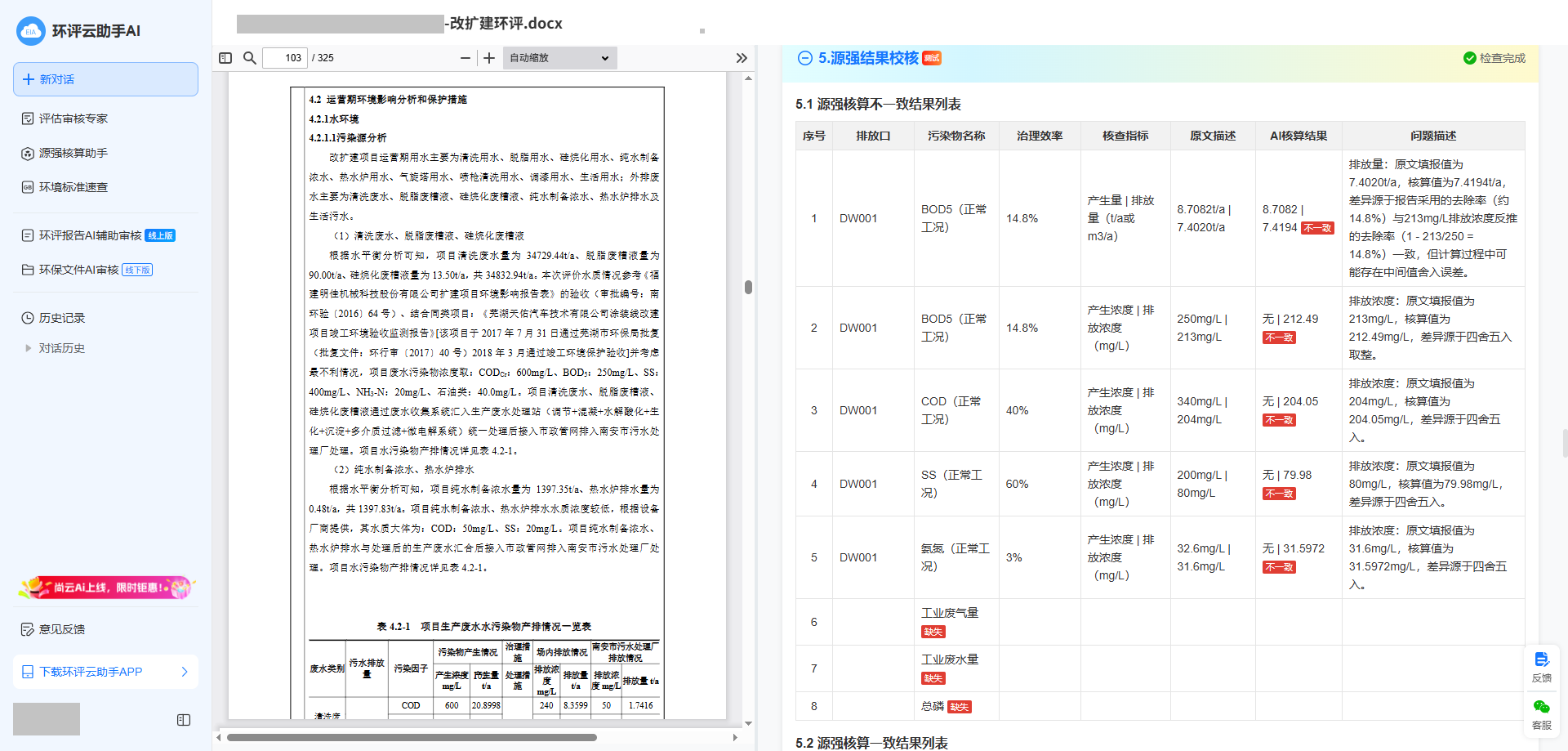 环评云助手AI审核,30分钟即可出具专家级审核意见:
