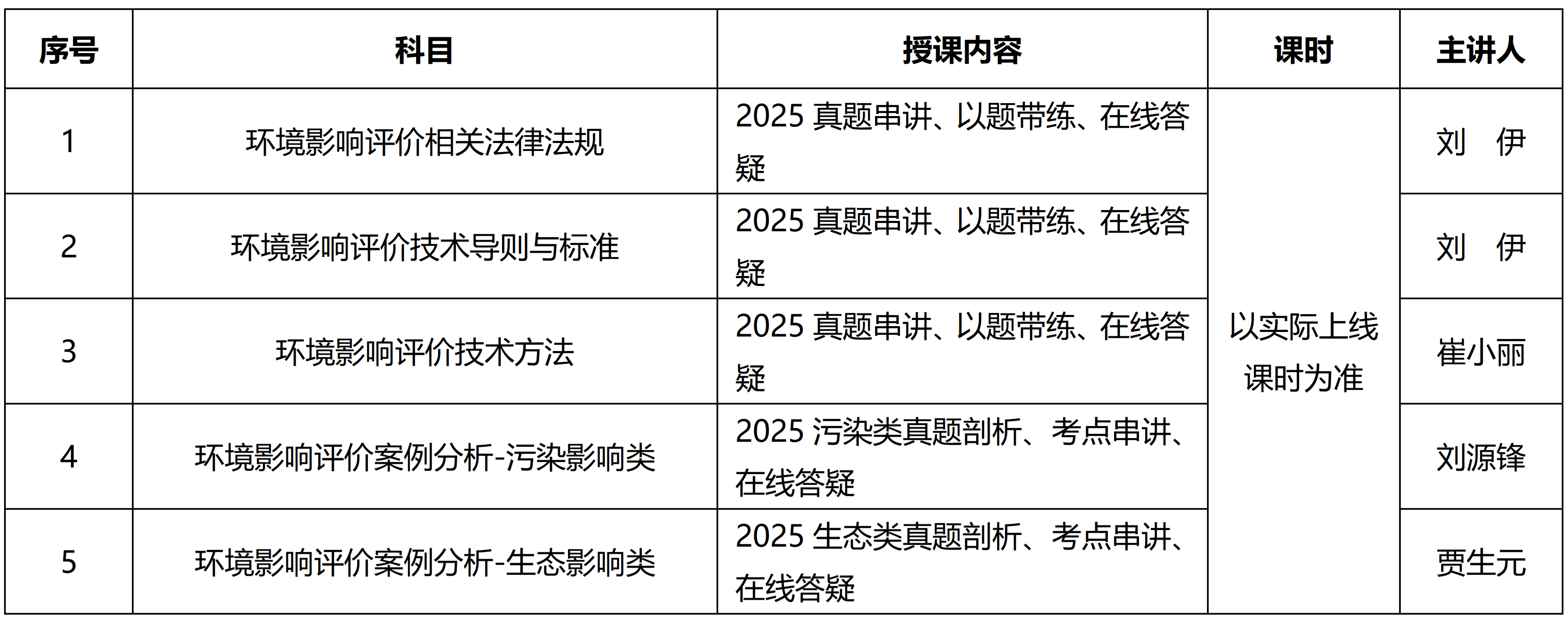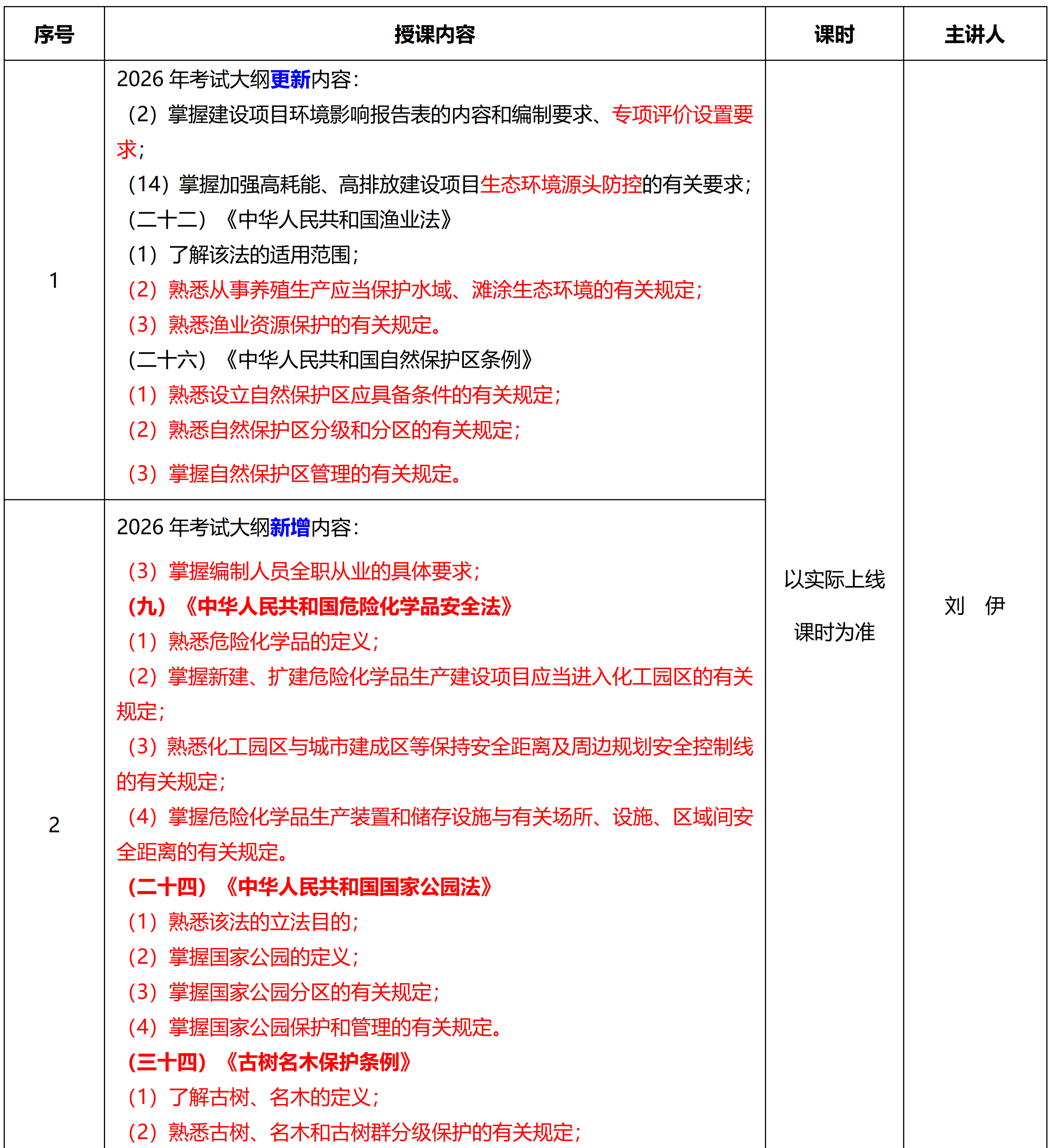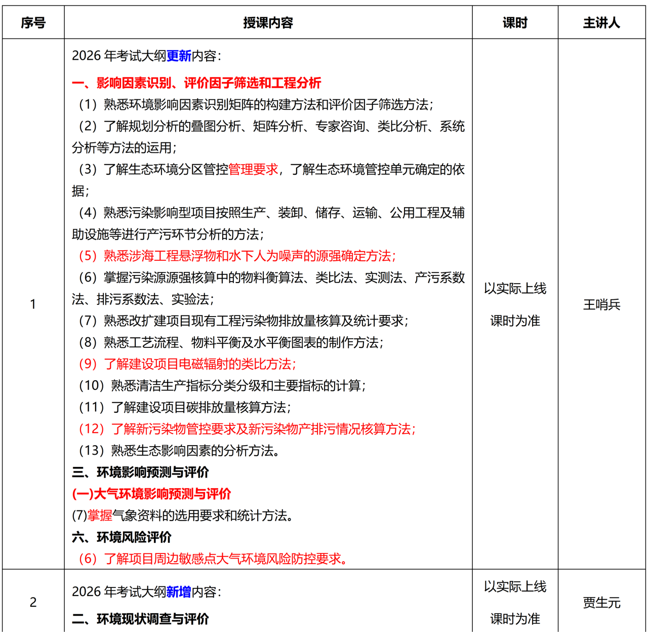 补充课程将根据内容特点采用录播或直播形式,具体安排将在2026年环评考试大纲发布后第一时间通过私信及学员群同步,敬请关注后续通知。